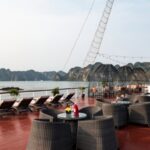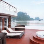Relax on the cruise. Don’t miss the sundeck area to witness the stunning sunset, join the sunset party and participate in a cooking class featuring authentic Vietnamese dishes.