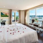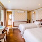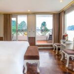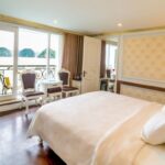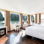 Luxurious and well-furnished cabins, all have a private balcony from which you can savor yourself in the beauty of Halong Bay