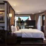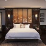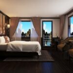 Elegantly designed furniture including working desk, seating area, wardrobe