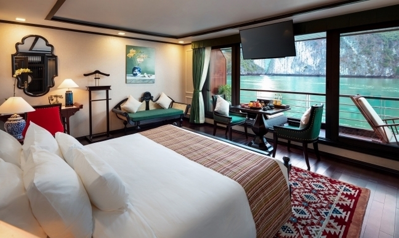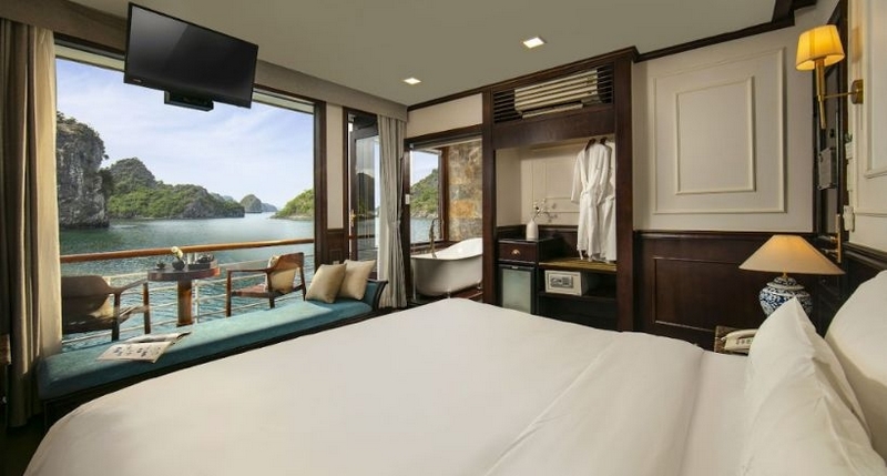 Luxurious and well-furnished cabins, all have a private balcony from which you can savor yourself in the beauty of Halong Bay - Lan Ha Bay
