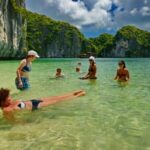 Leisure activities whilst contemplating the serenity of nature in Halong - Lan Ha Bay: swimming, kayaking or boating, etc