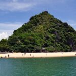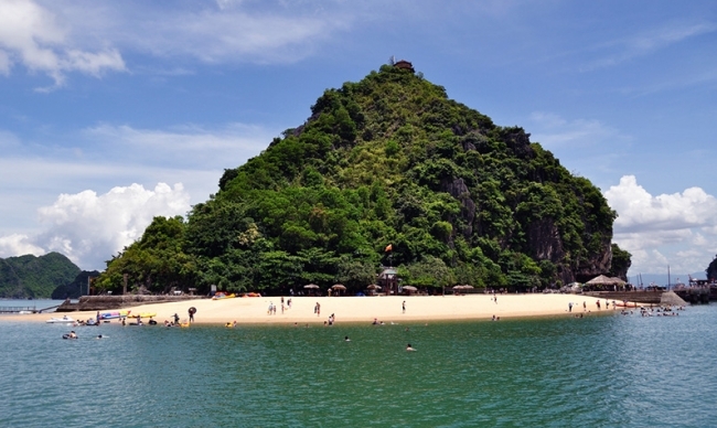 Titov Island (also known as Titop Island) is one of the most popular destinations on Halong Bay located in the heart of Halong Bay, and only 8 kilometers south-east of Bai Chay Harbour. Many international and domestice visitors choose a day cruise or overnight cruise on the crowded Halong Bay instead of other lesser touristy bays because for many they wish not miss out on this Halong Bay’s headline attraction. Another reason would be this island owning a beautiful crescent-shaped white sand beach and it is also the only spot allowing swimming in the bay by Halong Bay Management Board.